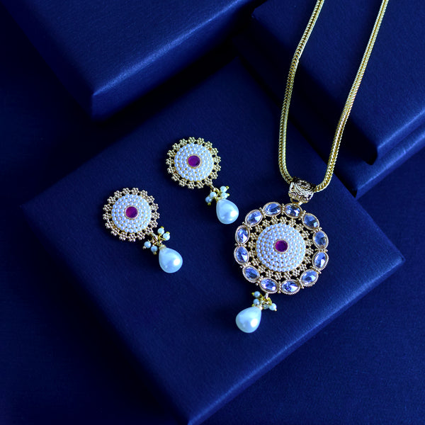 Enhance your style with this White Pearl Chain Necklace Set, a perfect blend of elegance and tradition. Designed to add a regal touch to any outfit, this set features dazzling Kundan stones and lustrous white pearls, making it an ideal choice for both festive occasions and modern-day celebrations.